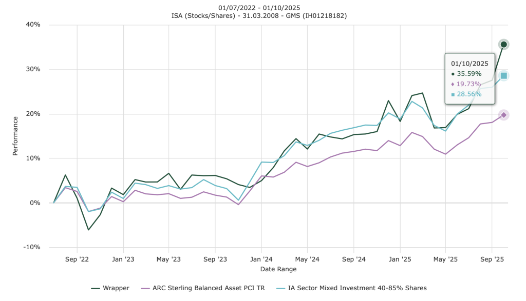 Our Cautious Managed Portfolio unfortunately is not a fair comparison versus its peer group as care home fees of several thousand pounds are withdrawn each month for the client in question. This reducing balance has blunted the true performance somewhat.